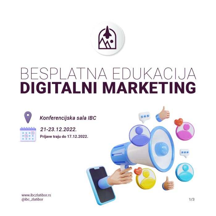 Za trodnevnu edukaciju u oblasti kreiranja sadržaja na influens način koja će se održati od 21. do 23. decembra potrebno je poslati prijavu putem mail-a: stojan.vukovic@ibczlatibor.rs i to do 17. 12. 2022. godine.