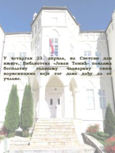 Tim povodom, Biblioteka „Jovan Tomić“ u Novoj Varoši sprovešće akciju besplatnog učlanjenja u biblioteku na godišnjem nivou.